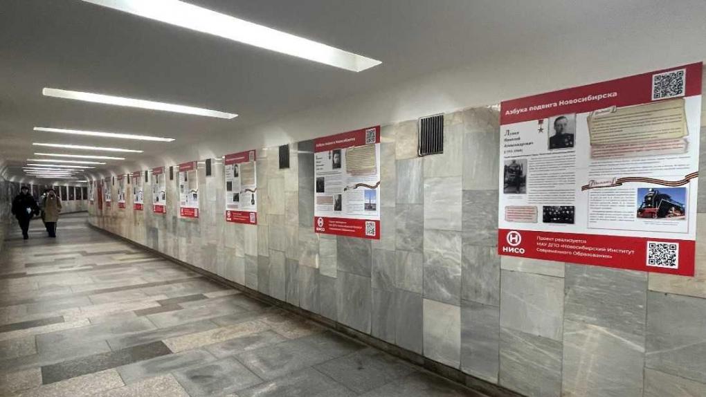 В переходе между станциями «Красный проспект» и «Сибирская» Новосибирского метрополитена начала работу выставка «Азбука подвига Новосибирска». Проект, подготовленный Институтом современного образования к 80-летию Великой Победы, знакомит пассажиров с земляками, внесшими вклад в разгром фашизма. Экспозиция основана на материалах нового учебного пособия для школьников.