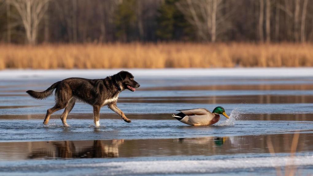 Специалисты назвали две основные причины. Во-первых, у многих собак просыпается охотничий инстинкт при виде зимующих на реках и озёрах уток, что может заставить питомца броситься в воду. Во-вторых, лёд на водоёмах ещё не везде достаточно крепок и однороден. Собака может поскользнуться, получить травму или провалиться под лёд.