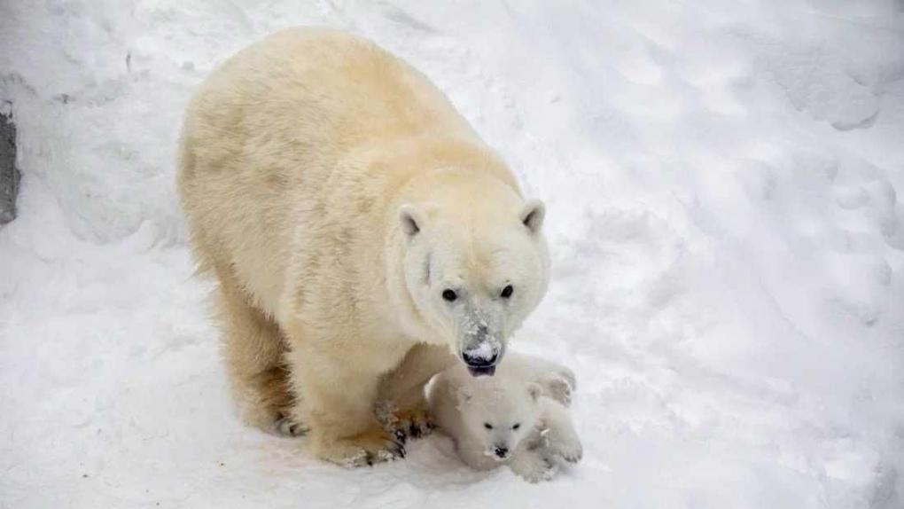 В семье белых медведей Новосибирского зоопарка пополнение: медведица Герда родила медвежонка.